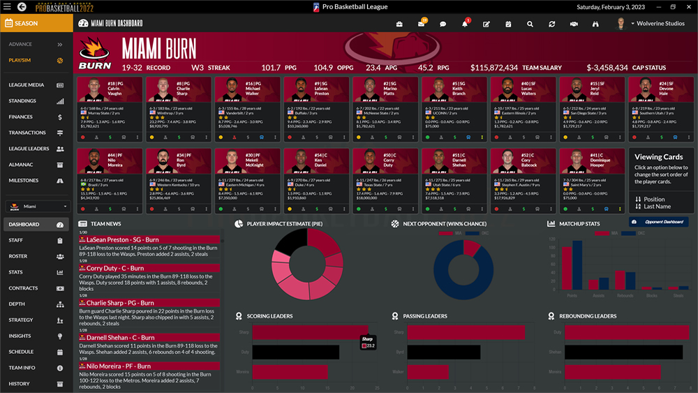 The presentation factor has been turned up! New player/coach/rookie cards and an updated dashboard screen along with new player and coach models make this version the best looking sim game on the market. New features like more notifications and improved 2D game presentation features make the game world even more vibrant and informative.