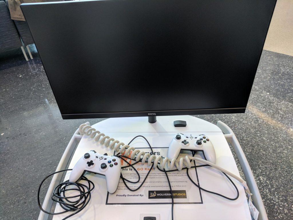 Have you heard about Gamers Outreach and their Project Go-Kart? Gamers Outreach builds portable, medical grade video game kiosks that allow hospital staff to provide bedside recreation for children who are unable to leave their hospital rooms. When we found out about this amazing organization we couldn't wait to get involved with them and set out to raise the $4,000 necessary to build and deliver one of their GO Karts. By donating a portion of sales in 2017 we were able to raise the funds and this past February we were able to join members of the Gamers Outreach team and J.J. Bouchard, the patient technology coordinator at C.S. Mott Children's Hospital in Ann Arbor, Michigan to deliver the GO Kart!